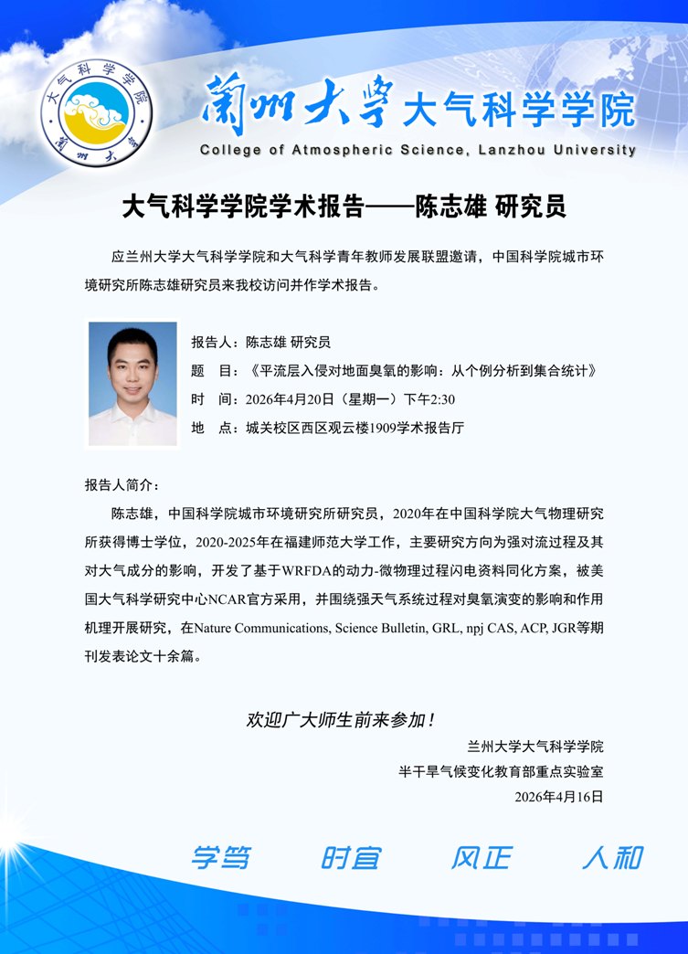 关于评选大气科学学院2026年“大气学子奖”的通知