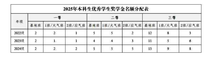 大气科学学院关于开展2025年本科生优秀学生奖学金和单项奖学金评定工作的通知