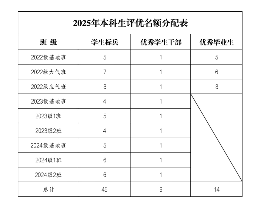评优严格按照《兰州大学学生荣誉体系管理办法》(校党委学发〔2024〕1号)文件精神执行。评选项目名额分配见下表。