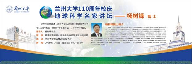 应兰州大学邀请,浙江大学杨树锋院士将做客兰州大学110周年校庆“地球科学名家讲坛”,并作学术报告。