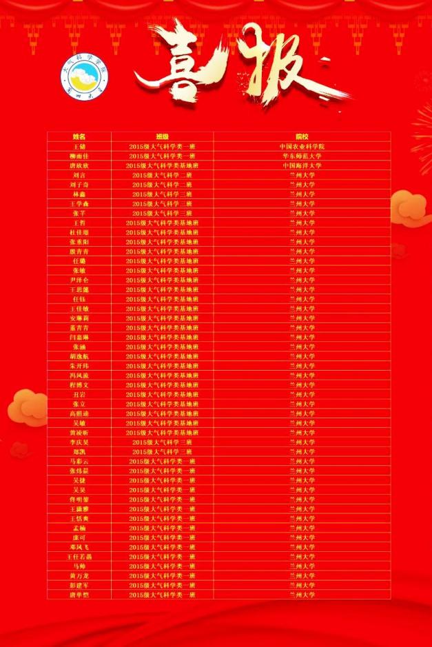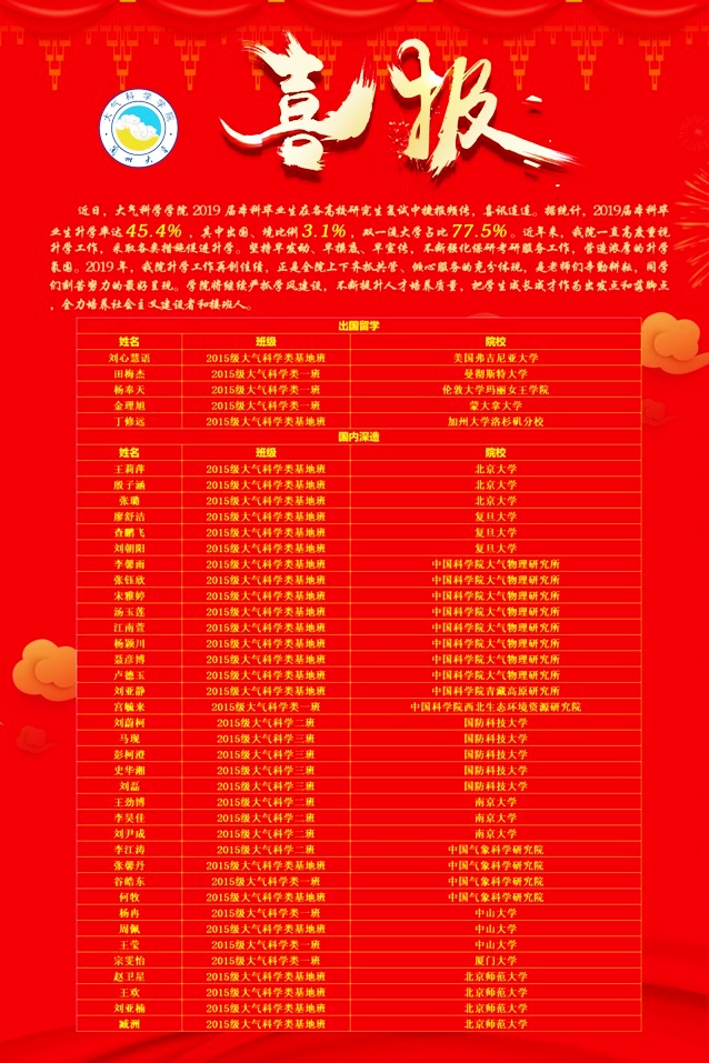 喜报:大气科学学院2019届本科毕业生升学率再创佳绩
