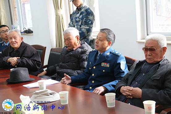刚到空军干休所时,全体人员起立迎接三位老首长蹒跚地走到座位上坐定。李裴蓓老师向老首长表明来意并简要介绍“空军国防月”,随后15名国防生代表分别作自我介绍。介绍过程,老首长问及大家的年龄,带有浓重的河北口音迅速拉近与在场几位老乡的距离,久未归家的同志们听到乡音也是心潮澎湃。由于老首长年事已高,耳朵不太聪敏,所以老师、同志们都提高嗓音,老首长也佩戴助听器仔细听我们介绍并时不时问一些别的问题,现场气氛热烈。