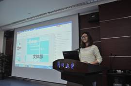 首先,学院研会主席关勖同学详细介绍了研究生会的组织建设及功能作用,并通过图片剪影的形式向大家简要介绍了研会的各个职能部门,让新同学对研会有一个整体的认识。随后,由负责各个部门的分管常委详细介绍了本部门的工作性质和工作内容。最后,研究生辅导员史万峰老师对大会进行总结,他对研会过去一年的工作给予了充分的肯定,并鼓励2017级研究生踊跃加入研会大家庭,互帮互助,共同做好服务同学的工作。