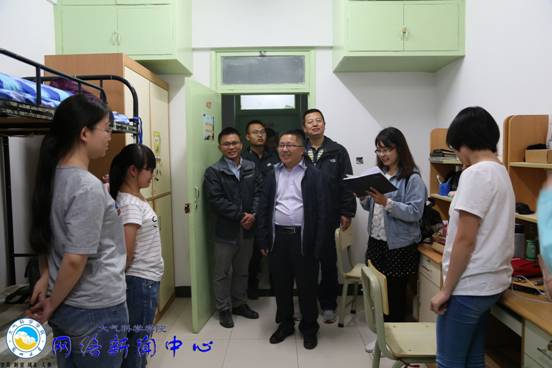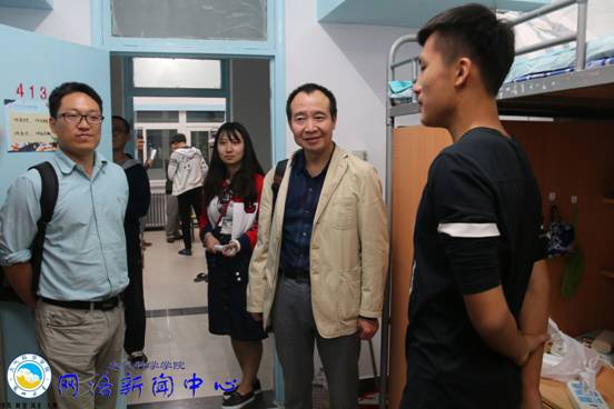 两天的迎新,迎来了我院140余名新生。为了给新生们传递家的温暖,深入了解新生到校后的生活情况,缓解他们因陌生环境带来的焦虑与担忧,2017年9月6日晚上8时,我院开展了走访新生宿舍慰问工作。我院党委书记张大伟老师、副院长张镭教授、张文煜教授、党委副书记司文选老师,新生班主任李积明、王国印、黄忠伟老师,教学秘书曹天府老师、辅导员尹杭、李裴蓓、沙新宇老师,2017级新生副班主任李寒一、张芊、李江涛、张远铮以及团委学生会人员走进各新生宿舍楼,探望新生。
