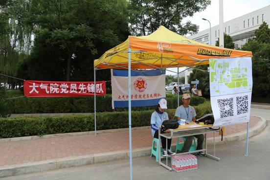 大气科学学院党员先锋队在本次迎新工作中也发挥了不可小觑的作用,分别在二食堂、排球场以及学校正门口三个人流量最大的路口设点值班,为全校新生以及家长进行指路、咨询等服务工作。