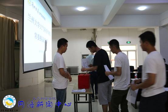 下午14时10分左右,笔试部分结束,工作人员组织收卷,学生代表和老师陆续到场。14时30分,会议正式开始。首先,纪海宇代表团委学生会第十三届常委会做2016-2017学年学生会工作总结。随后李裴蓓老师向全体学生代表说明第十四届常委会候选人产生过程,尹杭老师宣读《兰州大学大气科学学院学生会第十四届常委会候选人选举办法(草案)》,并征求在场学生代表的意见。