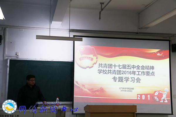 为深入学习贯彻共青团十七届五中全会精神,统一思想、凝聚共识、开拓创新,紧密围绕学校共青团2016年工作要点安排,紧跟校团委的相关工作指示精神,继往开来推进学院共青团工作深入发展,大气科学学院团委于3月9日晚,在天山堂A405召开了共青团十七届五中全会精神及学校共青团2016年工作要点专题学习会,会议由院团委副书记侯海坤老师主持。