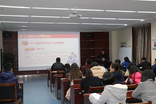 10月23日晚,学院组织研究生在观云楼2009开展学习党的十八届五中全会精神学习讨论会,会议由研究生第二党支部副书记王莹主持,研究生辅导员侯海坤老师与研究生班干部、研究生会干部、党支部支委、党员代表和部分学生参加。
