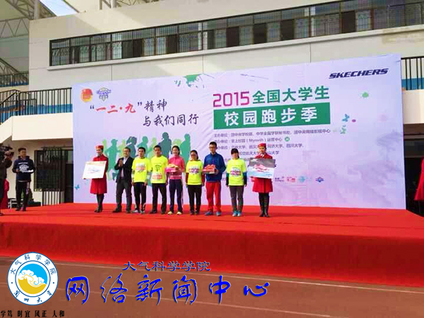 随后,比赛结果分晓,大气院佳绩连连――马建垒同学第三名,唐凯同学第四名,周紫阳同学第九名,董熊鑫同学第十名。通过此次活动,同学们不仅强健了体魄,更用自己的青春汗水浇灌了“一二·九”精神,用自身的坚持不懈为大气中国梦再续华章!