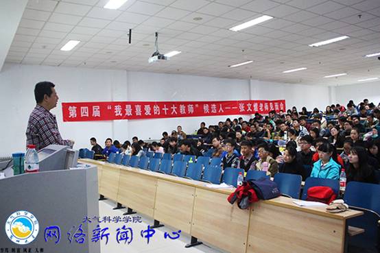 11月13日下午四点三十分,兰州大学第四届“我最喜爱的十大教师”候选人――大气科学学院张文煜教授见面会暨大气科学通识讲座于天山堂C201成功举办。大气科学学院辅导员史万峰老师、尹杭老师,13至14级全体同学以及学校各院的部分同学前来聆听此次讲座。
