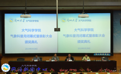 5月28日晚8点30分,以“天气为人类服务,兰大人在行动”为主题的大气科学学院2015年气象科普月活动历时两个多月在天山堂C302拉上帷幕。参加此次闭幕式的有大气科学学院党委书记张大伟、党委副书记司文选、团委副书记敏霞、辅导员史万峰及2012级至2014级的全体同学。本次大会由辅导员史万峰老师主持。