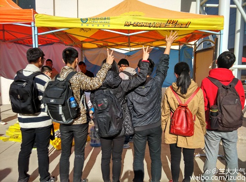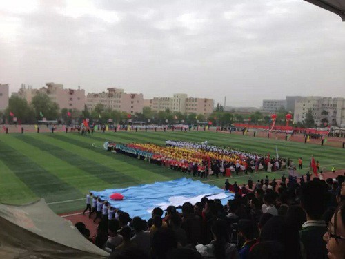 开幕式入场式我院方阵摆出的“蓝天白云”