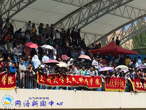 5月9日下午四点,随着男子4×400米的最后一名运动员冲过终点,历时三天的2015年校运会完美收官,闭幕式随后举行。出席本次闭幕式的领导有校党委书记王寒松,校党委副书记、纪委书记李正元,校党委副书记钟福国、郭琦,副校长安黎哲、李玉民,空军驻兰州大学选培办主任任建军大校等校领导,闭幕式由副校长曹红主持。最终,大气科学学院在缺少新生运动会成绩的情况下,依然以202分的成绩斩获团体第七名。我院党委书记张大伟、党委副书记司文选、辅导员敏霞、史万峰和全院2012、2013、2014级500余名学生参加了闭幕式。