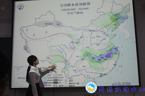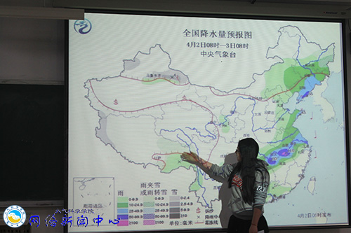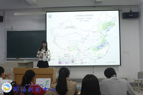 4月2日晚7:30分,大气科学学院气象月活动之“天气预报模拟比赛”在天山堂A403、A405隆重举行。来自大气院各年级的参赛选手们分别以4月2日中央气象台发布的两张24小时全国降水量预报图为模板,进行模拟天气播报。